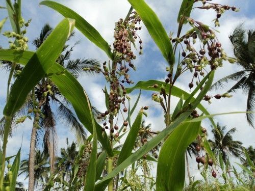 Описание сорта: это декоративное и лекарственное растение отличается многочисленными колосовидными соцветиями с шаровидными глянцевыми плодами-бусинками, из которых можно делать украшения. Экзотично выглядит в садах и парках.