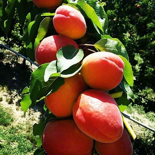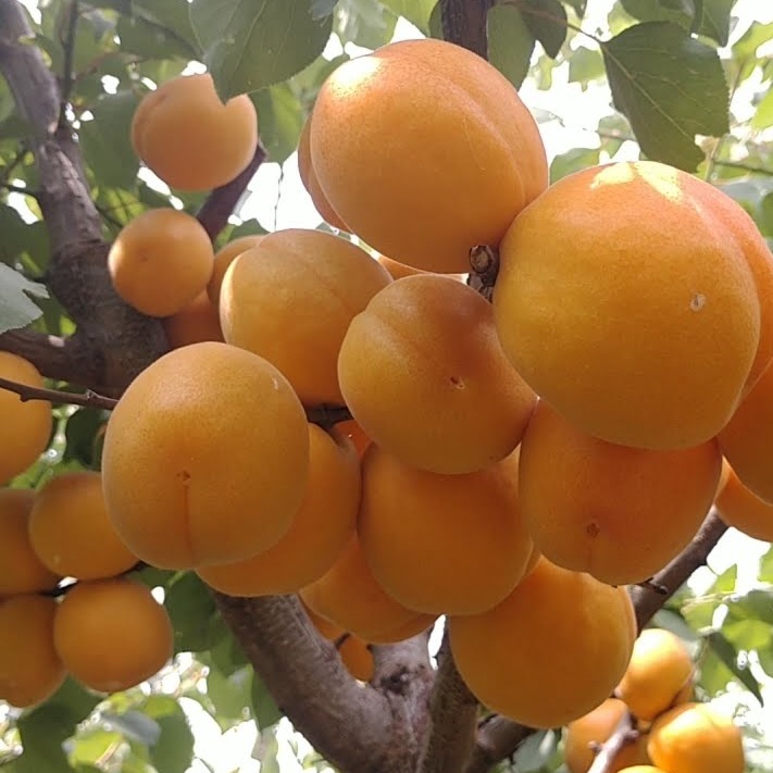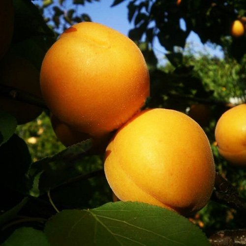 Плоды: средних размеров, удлиненной овальной формы, оранжевые, может наблюдаться красный румянец, мякоть сочная и ароматная, косточка легко отделяется, среднего размера.