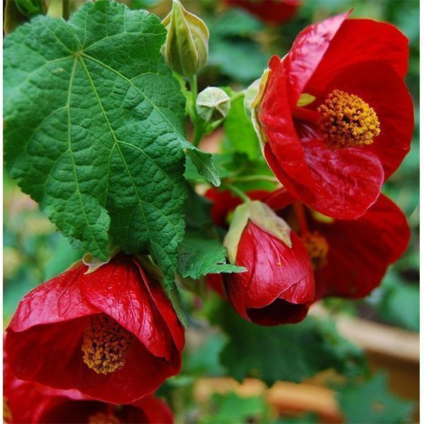 Неприхотливый, очень красивый комнатный цветок. Ценится за обильное и продолжительное цветение с апреля до ноября. Летом, на свежем воздухе, покроется еще большим количеством цветочков-фонариков, а листья станут насыщенного зеленого цвета. Листья абутилона слегка опушены мягкими волосками. Цветки крупные, колокольчатые. Цвет красный, оранжевый или желтый. Растение неприхотливое.