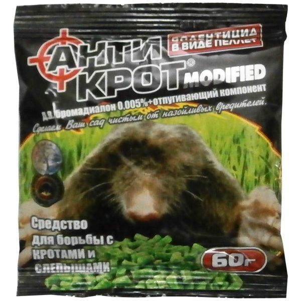 Эффективно, быстро и надежно избавит вас от кротов - непрошенных и очень активных землекопов. Соблюдая простые рекомендации по применению препарата, вы добьетесь того, что ваши растения больше никто не будет портить, а внешний вид газонов и клумб станет безупречным, если применять специальные гранулы от кротов антикрот.