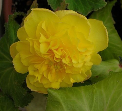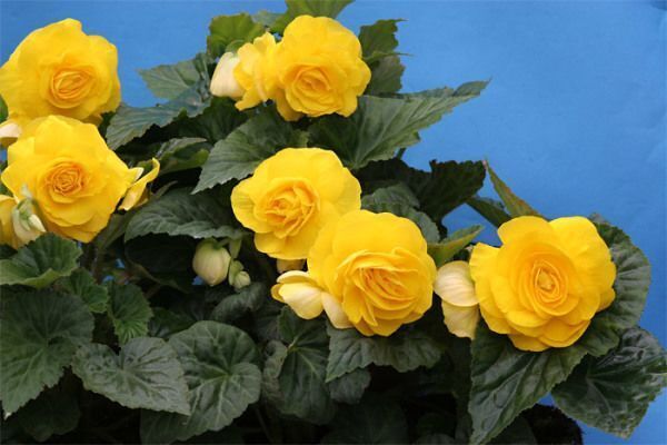 Махровая бегония яркого сочного желтого цвета. Бегония может расти дома в горшке и на открытом грунте. Этот цветок компактный вырастает до 20-25 см. Не требует много света.