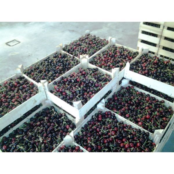 Плоды созревают в конце июня. Цвет темно-бордовый. Вкус гармоничный, с кислинкой, хрустящие. Масса плодов 8-10 грамм, диаметр 25-28 см. Ягоды ценятся за высокие товарные качества и отличную транспортабельность.