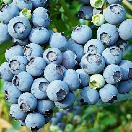 Высокопродуктивный и высокорослый сорт среднеспелой черники. Ценится за стабильные урожаи, очень крупные, красивые и вкусные ягоды. Устойчива к заболеваниям и заморозкам черника Блю Голд.