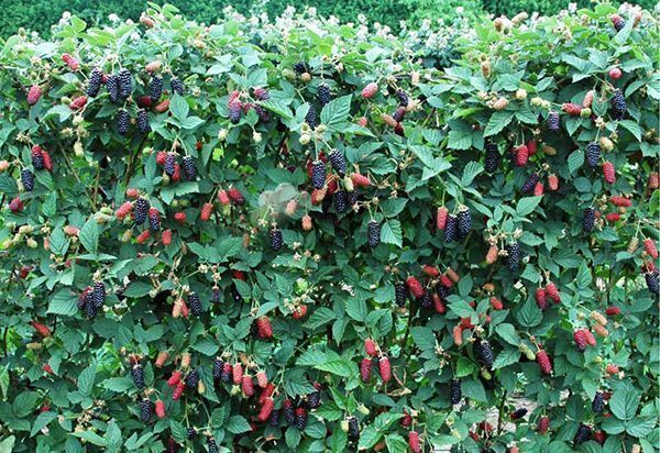 Описание. Урожайность ежевики от 10-12 кг с куста, по некоторым данным до 14 кг. Промышленная урожайность до 15 т/га по заявке оригинатора, что превышает производительность Трипл Краун, Силвана, Валдо и прочих аналогов. Есть данные и большей, до 25 т/га. В первый год плодоношения урожайность невысока. Побеги замещения третьего-четвертого года более мощные, плодовых веточек больше — продуктивность значительно растет.