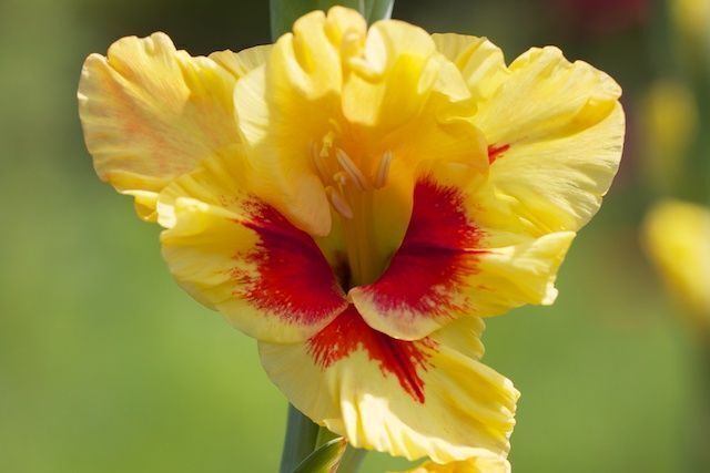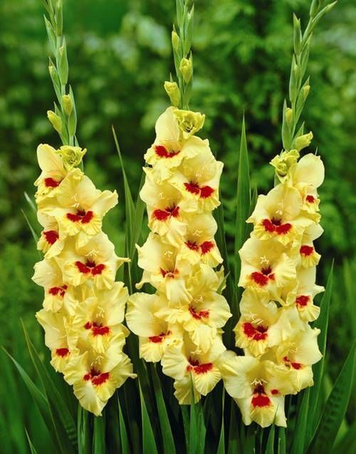 Посадка и уход: землю для гладиолусов готовят в середине апреля когда земля уже достаточно прогрета. Луковицы нужно очистить от шелухи (но без фанатизма), и проверить на наличие заболеваний. Садят в начале мая, в рыхлую землю на глубину 5-10 см в зависимости от размера луковицы, большие глубже чем мелкие, на расстояние 15-20 см друг от друга. В уходе за гладиолусами нет сложности, полив по мере надобности, подкормка во время формирования бутонов и подвязка цветоносов. Соблюдая эти легкие правила Вы получите прекрасные яркие цветы.