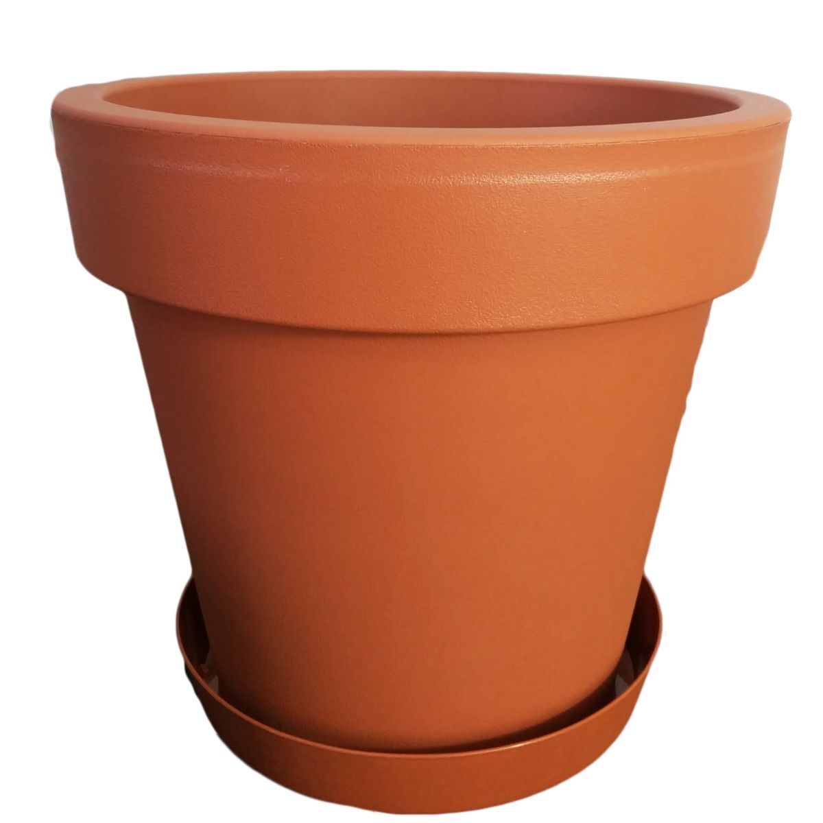 Терракотовый, теплый цвет горшка классической формы идеально сочетается с современным интерьером. Он изготовлен из качественного пластика, стойкого к воздействию солнечных лучей и влаги. Вазон имеет модный дизайн, выглядит стильно и элегантно. Он подойдет для декорирования балкона, террасы, кафе или квартиры.
