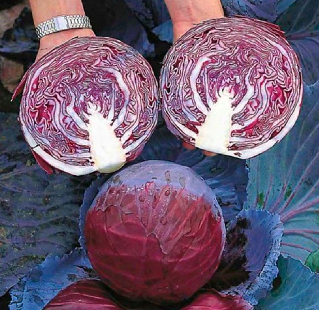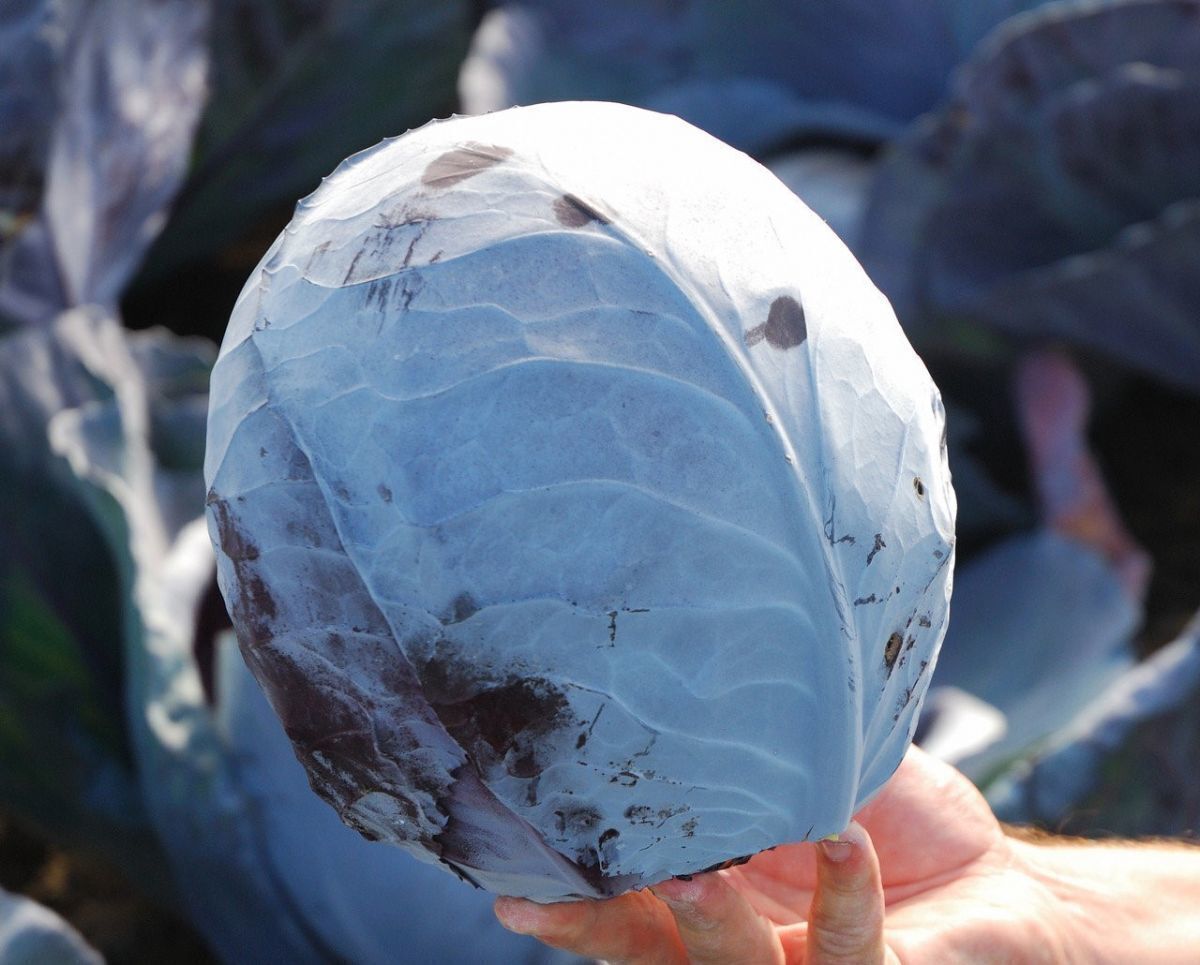 Описание сорта. Высокоурожайный гибрид. Вегетационный период 130-140 дней. Кочаны овальной формы, внутренние листья тонкие, выровненные по форме и размеру. Окрас насыщенно-красный. Не растрескивается, долго стоит в поле. Масса 2-3 кг.
