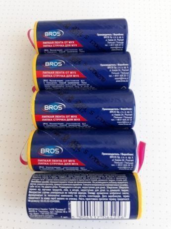 Липкая лента от мух польского производства Брос, обладает более эфективными свойствами по сравнению с продукцией других фирм.