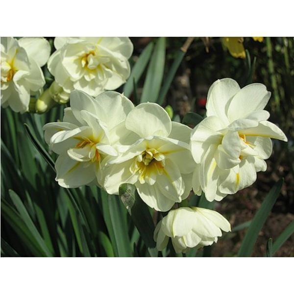 Описание сорта. Многолетнее луковичное растение. Махровый. Цветет в мае. Цветки кремово-белые с белым центром и светло-желтыми вкрапленими в центре. Высота растения 35-60 см. цветки полностью махровые, крупные, до 12 см в диаметре. Цветки расположены горизонтально. Аромат сладкий, мускусный. Каждый цветонос дает по 3-4 цветка.