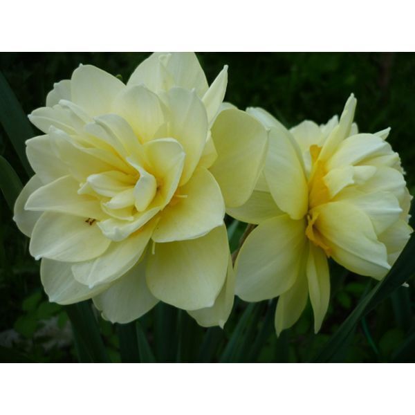 Описание сорта. Растение высотой 45-55 см. цветки полностью махровые, имеют дополнительные лепестки (доли околоцветника) или махровую коронку, а порой и то и другое. Окраска цветков бледно-желтая. Доли околоцветника широкие, с острыми концами, не отогнуты назад. Коронка гофрированная, с выростами, желто-оранжевого окраса. Цветки диаметром 10-12 см. период цветения до трех недель.