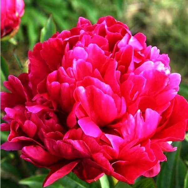 Темно-рубиновый махровый с неровными краями пион. Выглядит очень эффектно, создаст атмосферу благородства и роскоши в вашем саду. Хорошо стоит в срезке.