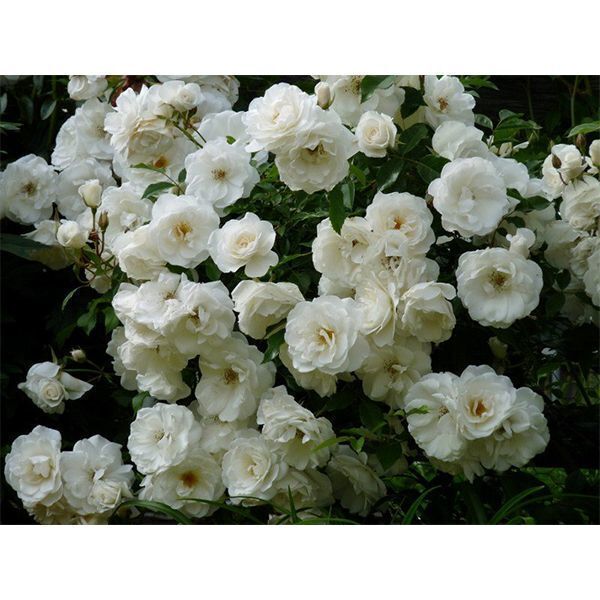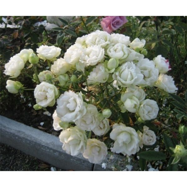 Белоснежная полиантовая роза с мягким ароматом. Серия Avenue. Хорошо переносит тень, выращивается в контейнерах. Хорошо переносит влажную погоду, зацветает обильно махровыми мелкими цветками.