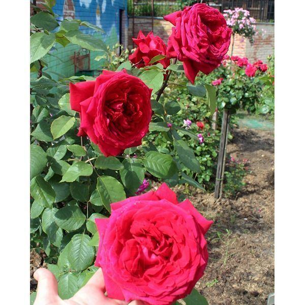 Описание сорта. Цветки густо-махровые. Лепестков в бутоне более 100. Лепестки чашевидные в старинном стиле. Цветков на стебле 1-3. Размер цветка 12-13 см. Аромат дамасской розы, насыщенный. Плодоножки прочные, не поникают, дождь держат отлично. Куст густой, облиственный равномерно, побеги крепкие, прямостоячие. К грибным заболеваниям устойчивость высокая.