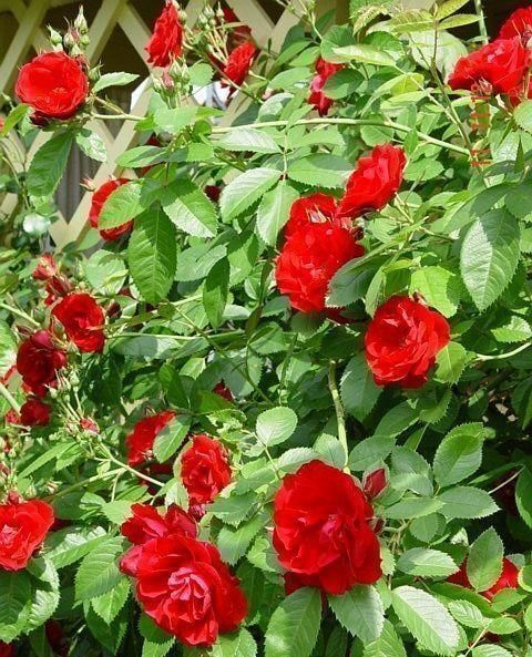 Плетистая роза, завораживающая взгляд своей яркой красотой. Цветки размером около 6 см густо покрывают быстрорастущие побеги непрерывно на протяжении всего теплого сезона. Благодаря этому побеги розы Флейм Дэнс словно длинные языки пламени. Они способны растопить своим жаром даже самое холодное сердце.