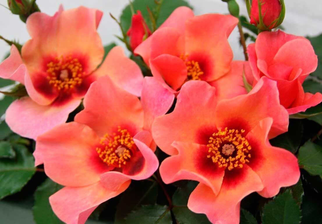 Диаметр цветков: цветки простые диаметром 4 - 6 см очаровывают удивительным насыщенно-розовым окрасом с лососевыми и абрикосовыми оттенками.