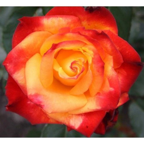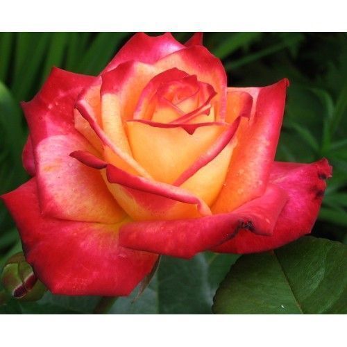Эта обильноцветущая штамбовая роза, необычного цвета, станет украшением любого сада. Цветок в полном роспуске имеет чашевидную форму, желтый с ярко-красной каймой по краю лепестков, умеренно-махровый, расцветая, показывает серединку. Листва темно-зеленая, глянцевая. Любит солнечные места, защищенные от ветра и регулярные подкормки.