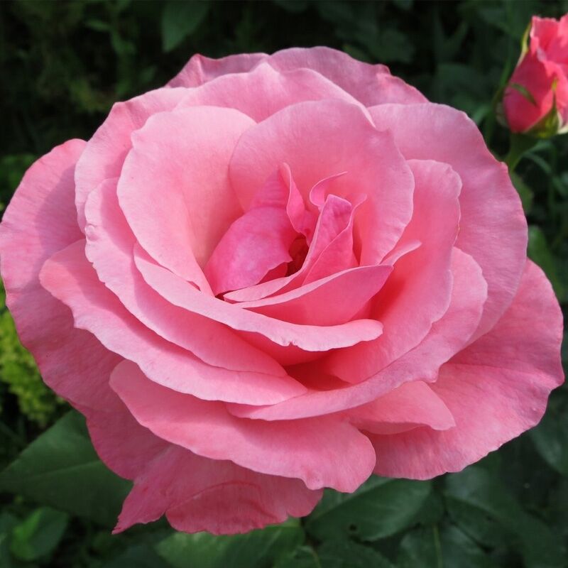 Чайно-гибридная роза Пинк Куин, имеет цветы нежно-розового оттенка, внешняя сторона лепестков более насыщенного цвета. Под полящем солнцем могут выгорать до более светлого окраса. Выращивают Пинк Куин для срезки, а также будет прекрасным украшением для вашего сада.
