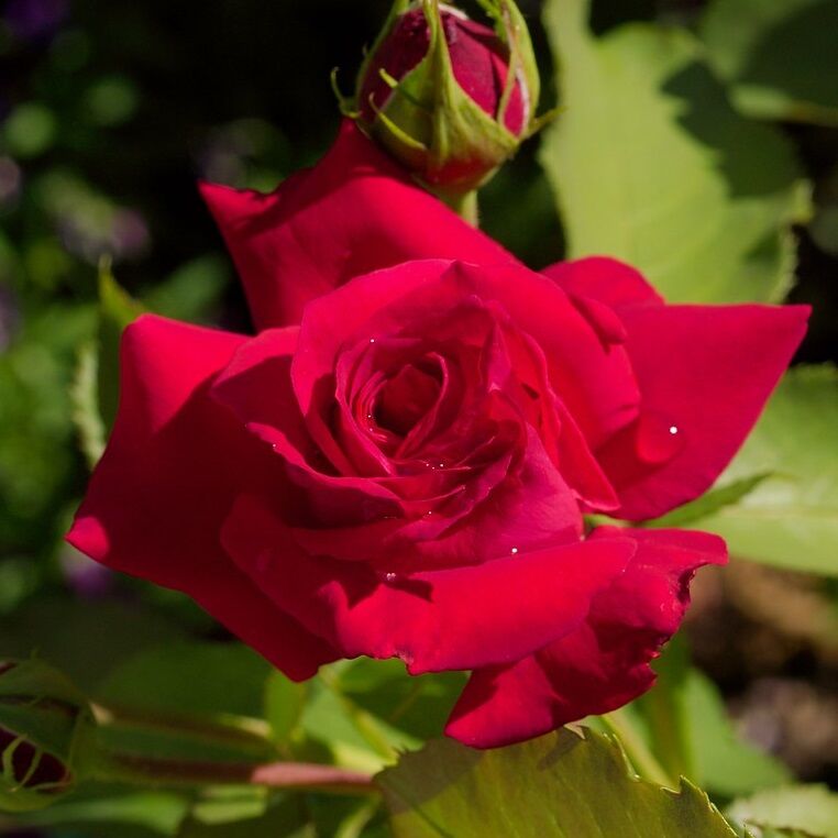 Описание сорта: аромат средний, приятный, лепестки насыщенного красного цвета. Растет не высокая, до 100 см, листья глянцевые, темно-зеленого цвета. Есть шипы. Цветки на стеблях появляются по одному или до 3 штук.