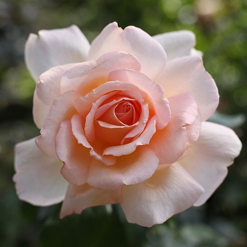 Диаметр цветков: бутон в форме высокого бокала, медленно раскрывается в форму розетки - диаметром 11-12см, лепестки, кремово-розовые с персиковым оттенком.