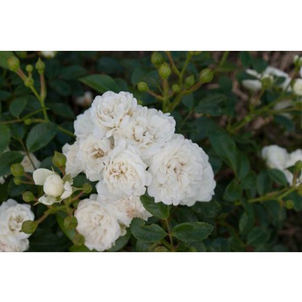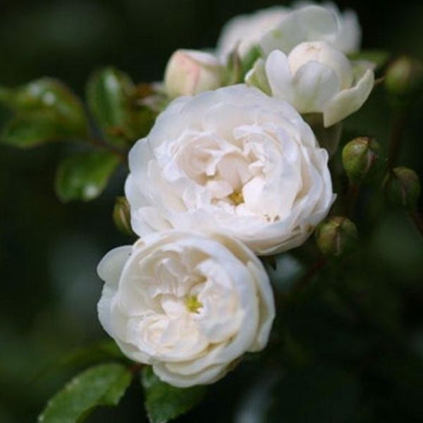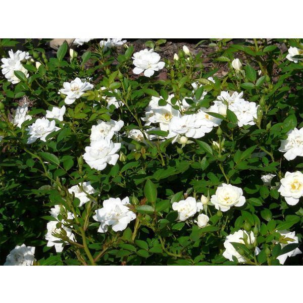 Описание сорта. Цветы белые диаметром 3-4 см появляются в кистях по 10-40 штук. Листва ярко-зеленая, мелкая, блестящая. Куст высотой до 60 см. Цветет очень обильно. Зацветает немного позже большинства роз. Морозоустойчивость и устойчивость к мучнистой росе высокая. К черной пятнистости устойчива. Устойчивость к дождю средняя.