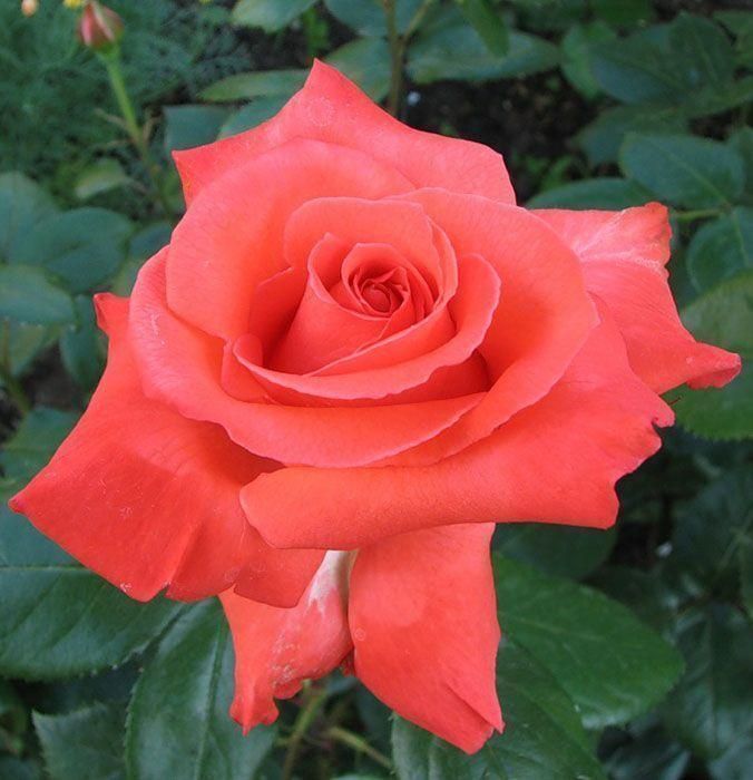 Васхищает своим пламенным цветом. Бутон слегка трапециевидной формы с лепестками оранжевого цвета с розоватым оттенком. Эта роза станет ярким акцентом в любом букете в окружении изумрудных лепестков.