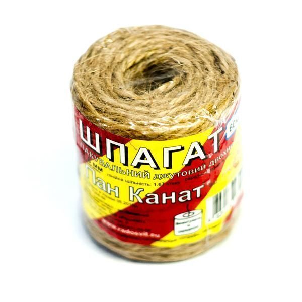 Компактный шпагат, в рулоне 60 м для упаковки любой тары. Хорошо и туго завязывается за счет ворсистой структуры. Шпагат экологичный, сделан из джута, перегнивает в земле за относитьльно короткий период времени. Его можно использовать для декорирования горшков, бутылок, коробочек.