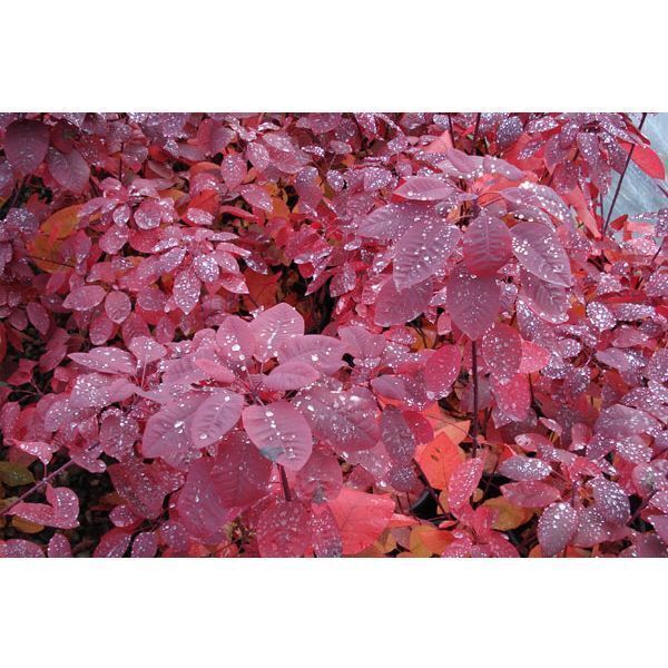 Эффектный и изысканный кустарник, чрезвычайно красивый осенью. Окрас листьев настолько разнообразный и великолепный, что не поддается описанию. Будто бы пылает на осеннем солнцем всеми оттенками красного, оранжевого и желтого скумпия.