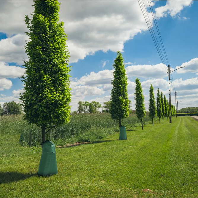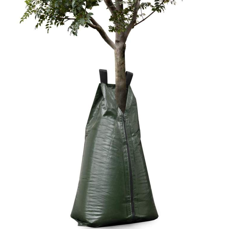 Сумка для полива деревьев – это удобное и практичное решение для равномерного и длительного увлажнения деревьев, плотностю 180 г/м². Сумка легко устанавливается вокруг ствола дерева (диаметром до примерно 20 см), фиксируется молнией и заполняется водой через специальное отверстие, два мешка можно соединять между собой для больших стволов. Скорость опорожнения мешка составляет от 6 до 12 часов (время высвобождения зависит от типа почвы, погодных условий, сорта и размера дерева). Такой метод помогает избежать переувлажнения и экономит воду, направляя её прямо в прикорневую зону. Подходит как для молодых саженцев, так и для деревьев, пересаженных или растущих в условиях недостатка влаги. Использование таких сумок снижает стресс растения при засухе, способствует быстрому укоренению и здоровому росту.