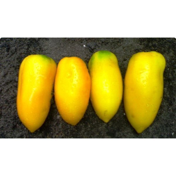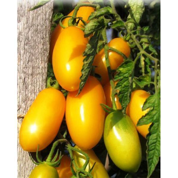 Описание сорта. Новый высокорослый томат типа Сан-Марцано. Вегетационный период 65 дней после высадки рассады. Плоды желтого цвета, удлиненные, однородные, сливовидные, массой 100-120 грамм, плотные и мясистые. Транспортабельность высокая.