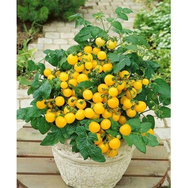 Описание. Куст высотой до 45 см, с небольшими ярко-желтыми плодами, средней массой 15-20 г. Семена обычно засевают в феврале-марте (если предполагается искусственное освещение, то можно высевать под зиму) на глубину 1,5-2,0 см в контейнеры или горшки с рыхлой почвой и накрывать стеклом или пленкой. При температуре +25С всходы появляются через 7-14 дней. Пленку снимают. Пикируют проводят в фазе 1-2 настоящих листьев. Примерно через 4-5 недель рассада окрепнет и ее можно будет пересадить в большие емкости. Оптимальная температура выращивания +18С ночью и +24С днем.