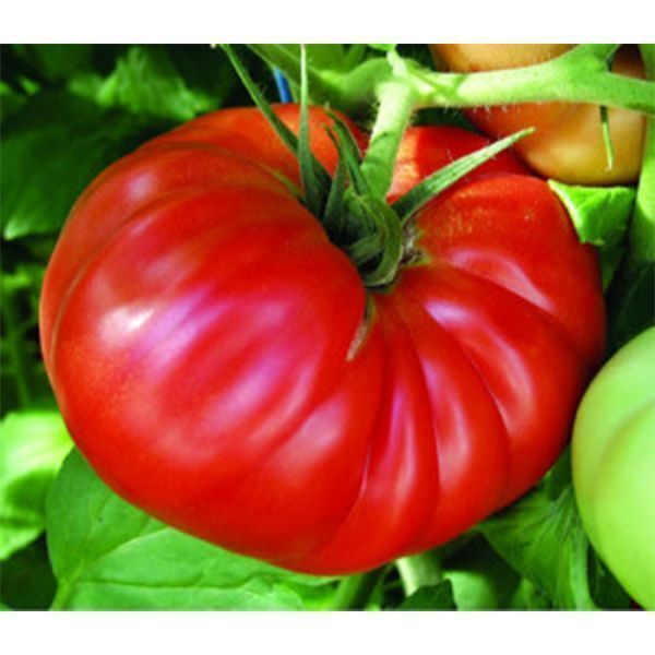 Описание сорта. Среднеранний сорт томатов. Крупноплодный гибрид. Плоды крупные, 300-500 грамм, ребристые, яркого красного цвета. Вкусовые качества отличные. У плодов отсутствует пятно у плодоножки. Внутренняя структура мясистая, плотная. Устойчивость к заболеваниям высокая. Семян в 1 грамме 250-300 грамм.