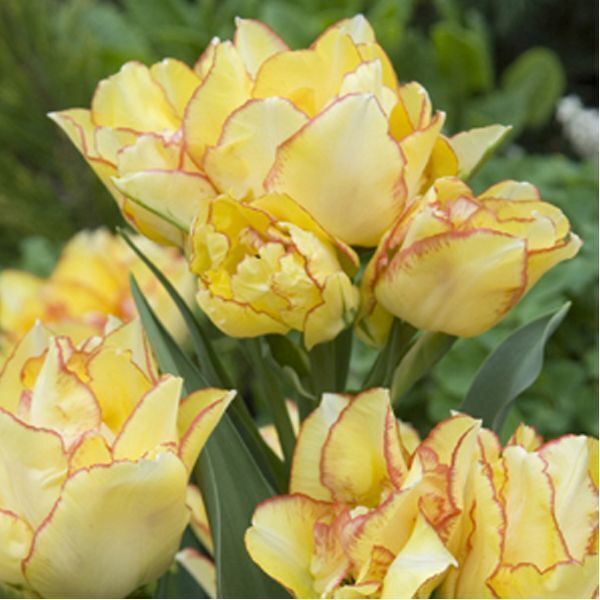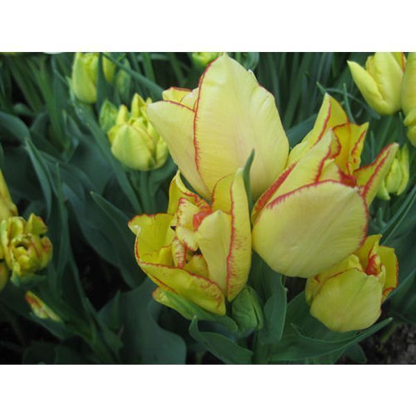 Описание сорта. Сорт ранний махровый. Цветет в апреле-мае. Цветки 6-10 см высотой, бокаловидной формы, желтые с тонкой красной окантовкой. Скорость роста средняя. Высота растения до 50 см. Каждая луковица образует до 3-5 цветоносов.