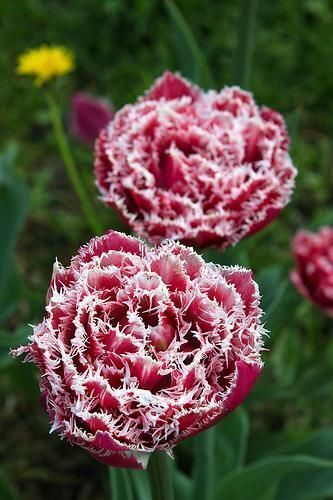 Описание растения: Высокий 45-сантиметровый тюльпан с сильной цветоножкой. Большой ярко-розовый бутон с игольчатой бахромой. Несмотря на его сложный вид его достаточно легко выращивать. Цветок потрясающий, неискушенный глаз даже не догадается что это тюльпан.