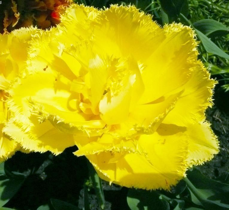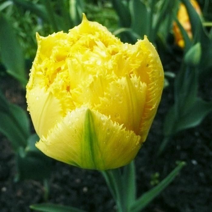 Описание растения: Высота растения 35 см. Большой ярко-желтый бутон. Лепестки бахромчатые, их очень много. Цветок пышный. Несмотря на красоту и хрупкость цветка его достаточно легко выращивать. Букет или клумба таких тюльпанов выглядит очень роскошно.