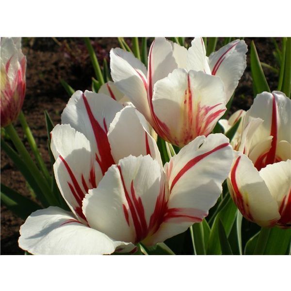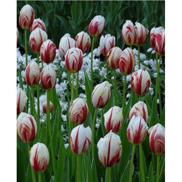 Описание сорта. Относится к классу Тюльпаны Триумф. Раннецветущий. Цветет в апреле-мае. Цветы крупные, удлиненной формы. Хорошо сохраняют форму бокала. Снаружи лепестки бело-красные, внутри красновато-белые. Серединка цветка желтая. Стебли длинные. Высота растения до 60 см.