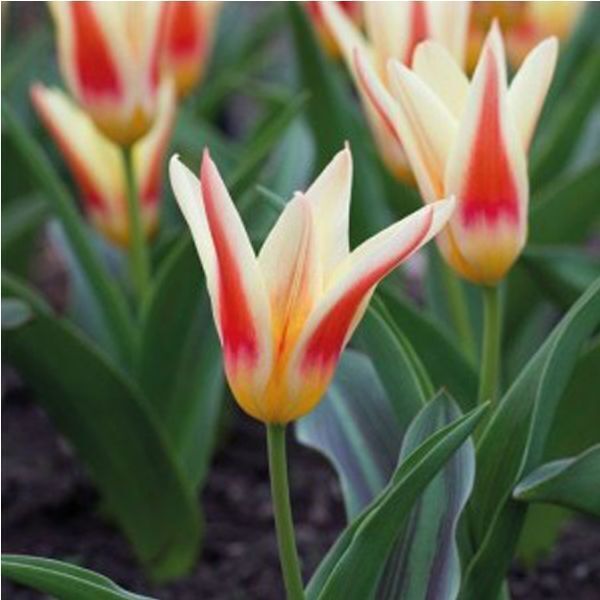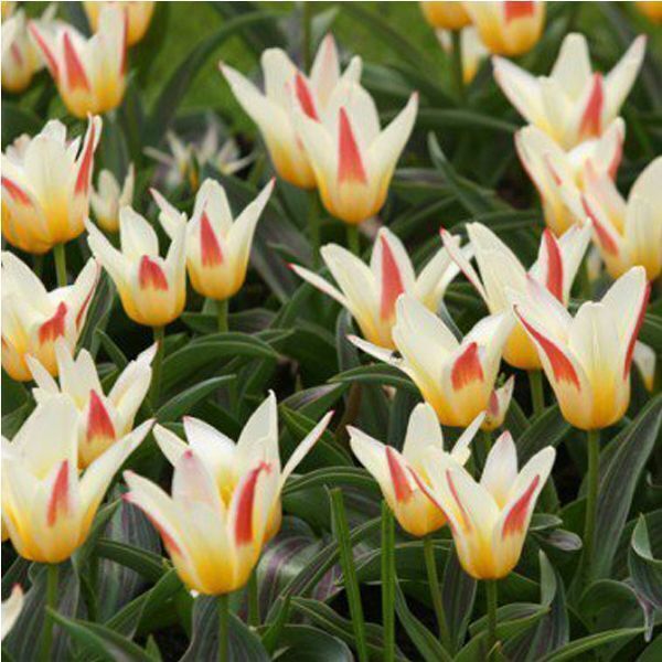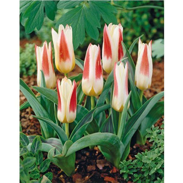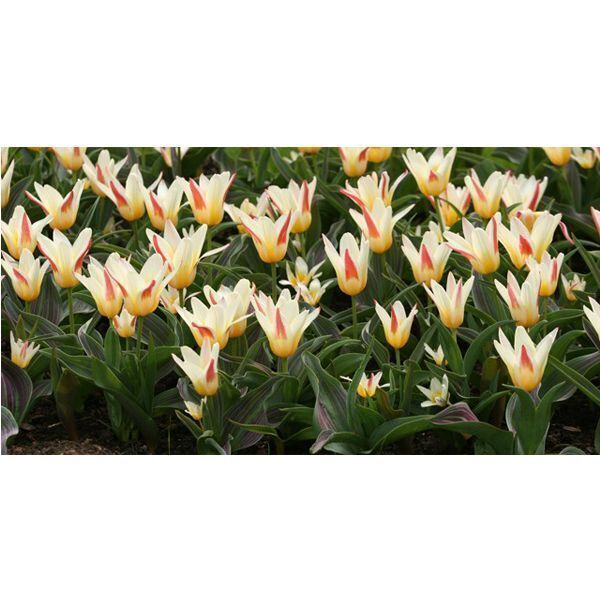 Описание сорта. Растение до 25 см. Цветет до 4 недель. Цветки разноцветные, снаружи кремового, красного или желтого цвета, а внутр. Кремового или желтого. Листя раскидистые, темно-зеленые. Раскрытые цветки похожи на соцветия водяной лилии. Цветет обильно однократно. Высота бутона до 8 см.