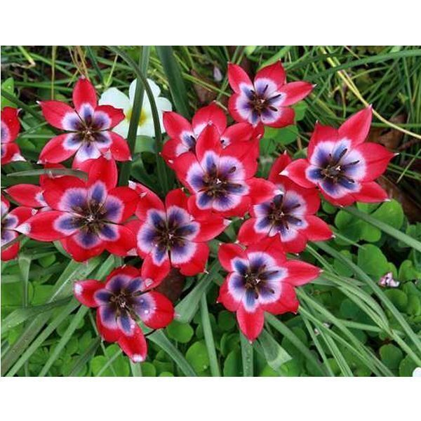Описание сорта. Высота растения 10-20 см. Луковица формирует по 2-5 бутонов. Бутоны красно-пурпурные, серединка василькового цвета, окружена бледно-голубой каймой. В начале цветения окраска может быть немного приглушена.