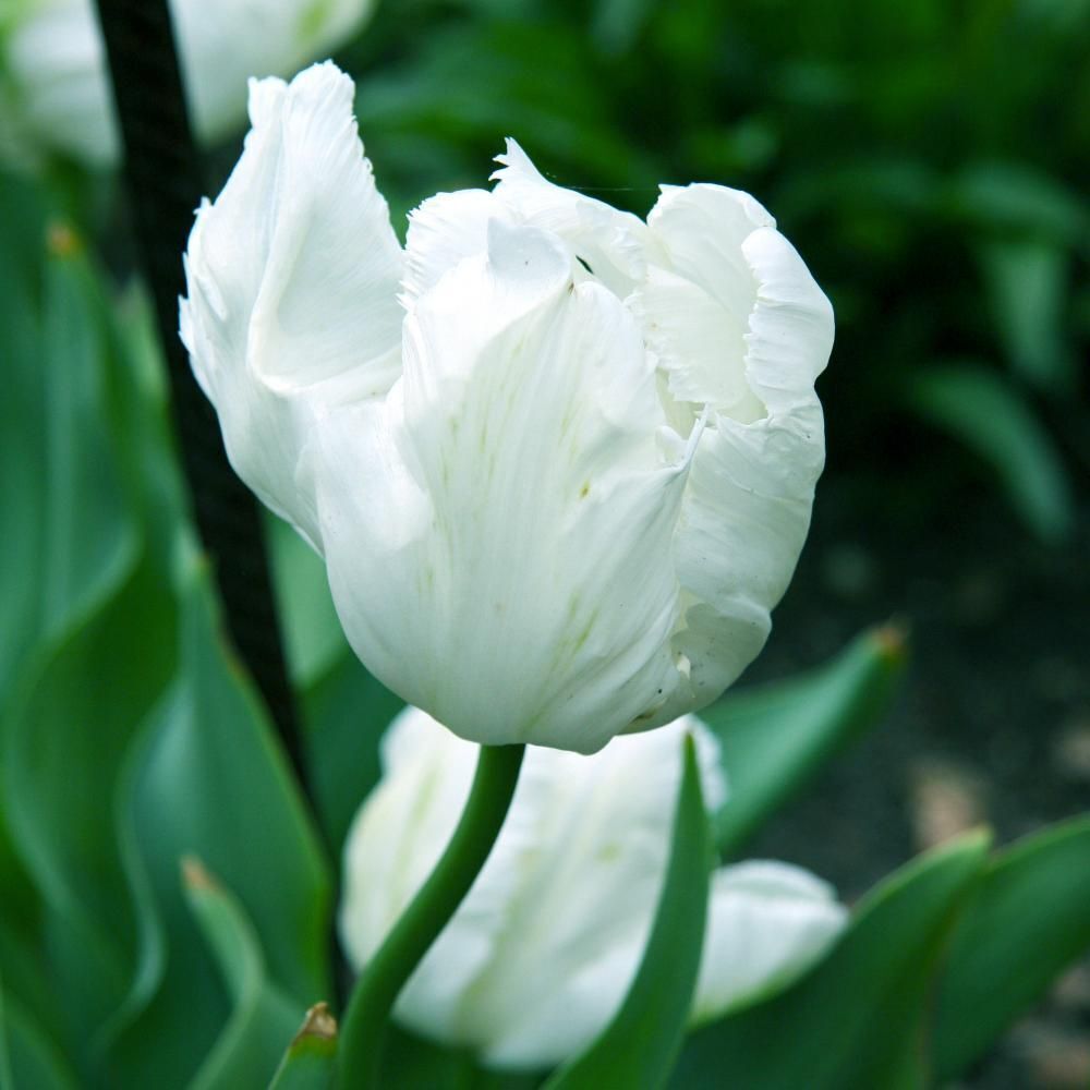 Нежный белый ароматный цветок. Лепестки волнистые, поэтому клумба с такими тюльпанами напоминает стаю белых птиц. Такой цветок в букете смотрится элегантно, у него длинная ножка и большой гофрированный бутон.