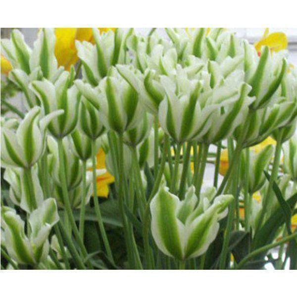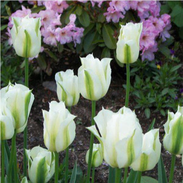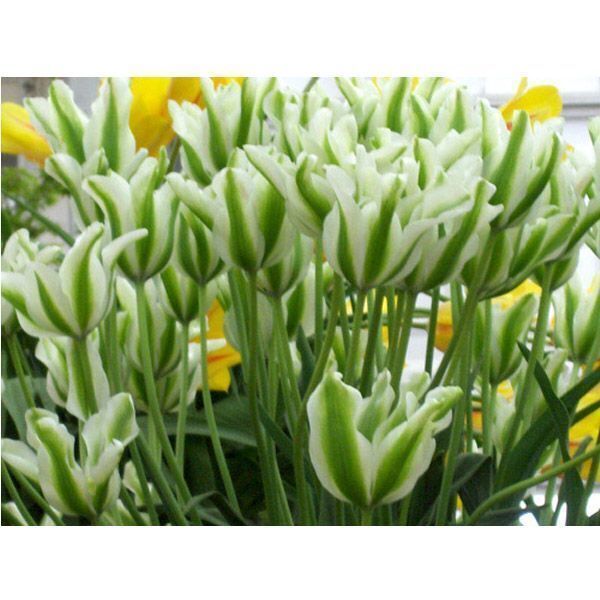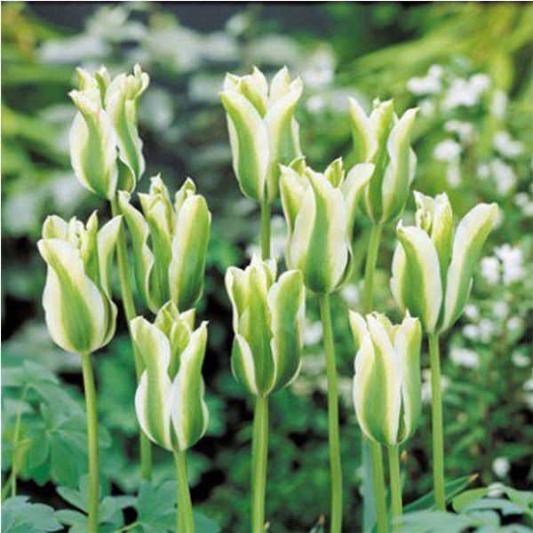 Романтический позднецветущий сорт, заслуживающий особого внимания. От других тюльпанов отличается частично зеленоватым околоцветником. В одном цветке собрана целая гамма разнообразных цветов, а лепестки необычно закручены и украшены широкой зеленой полосой.