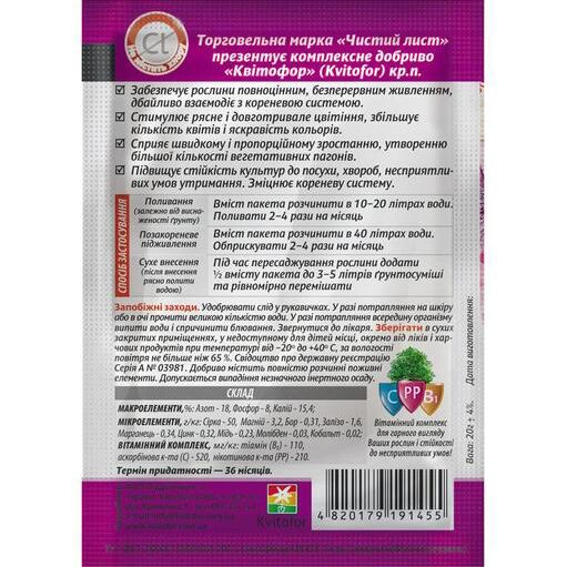 Характеристики Удобрение Чистый Лист для петуний и пеларгоний