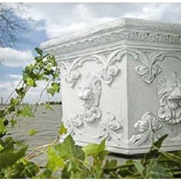Компактный и роскошный уличный вазон, украшенный барельефным изображением головы льва. Внесет ретроспективные нотки и упорядочит пространство любого сада или приусадебного участка.