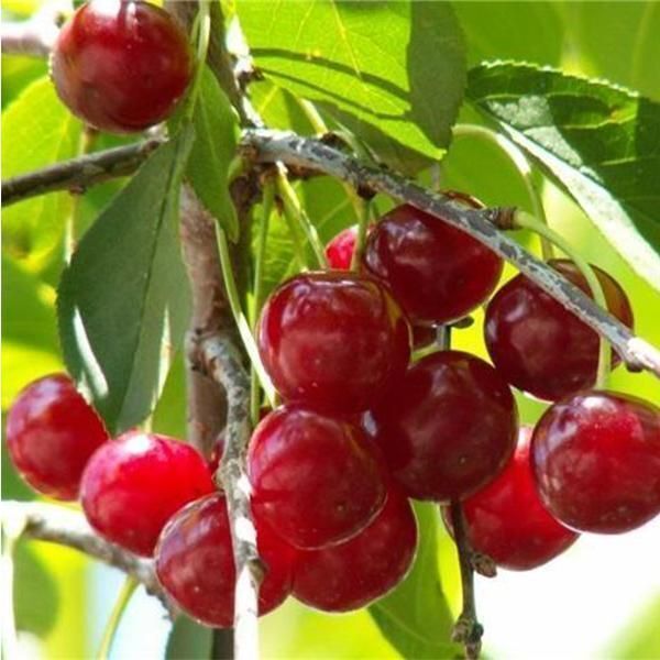 Описание. Плоды созревают с середины июня. Плоды одномерные, плоскоокруглые, вершина округлая, у основания мелкая ямка, брюшной шов малозаметный. Плоды крупные, до 6 грамм. Плодоножка средней толщины, от ветки отделяются легко. Цвет темно-бордовый, почти черный. Сок темно-красный. Косточка свободная, округлая, маленькая. Вкус кисло-сладкий, освежающий.