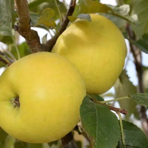 Плоды: средние, весом 200 грамм, конической формы. Желтые, с характерным красным румянцем. Сорт относится к десертным и имеет сбалансированный вкус по сладости и кислоте. Мякоть плотная, характерного кремового цвета, очень сочная.