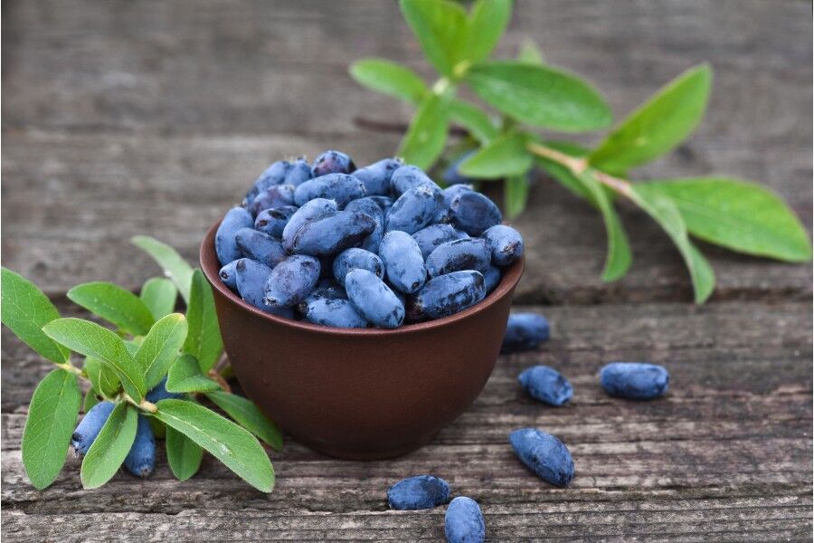 Плоды: ягоды крупные до 3г, длинной до 3 см, удлиненно-овальной формы, сине-голубого окраса, с восковым сизым налетом. Вкус сладкий с небольшой кислинкой. Мякоть мясистая, нежная, мягкая. Зрелые плоды долго не осыпаются. Урожайность жимолости Аврора высокая: 5-6 кг с куста.